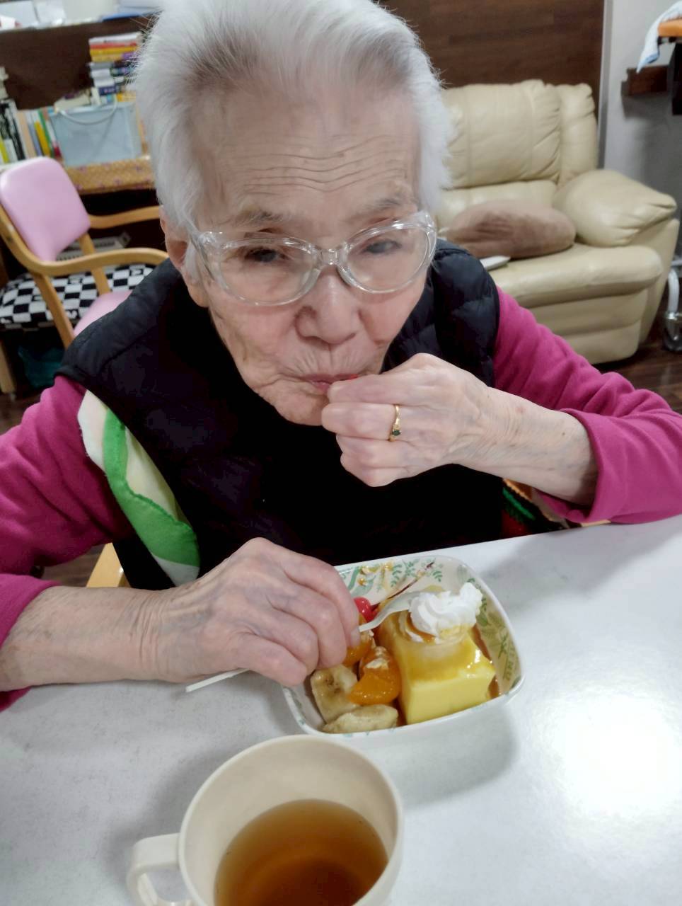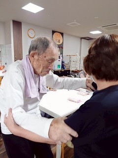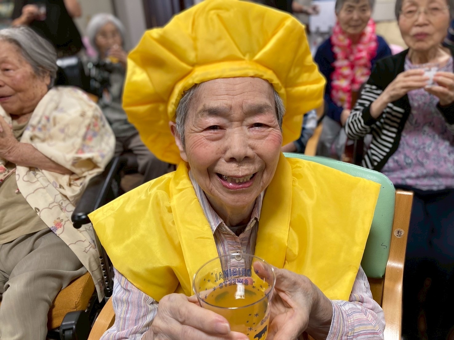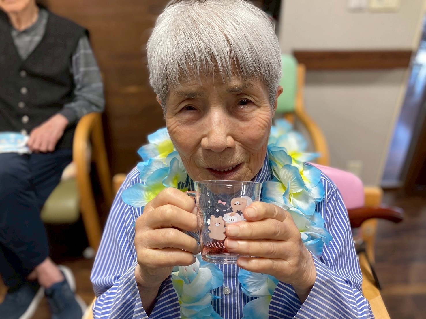 乾杯をされている利用者様とてもいいお顔されていますね。